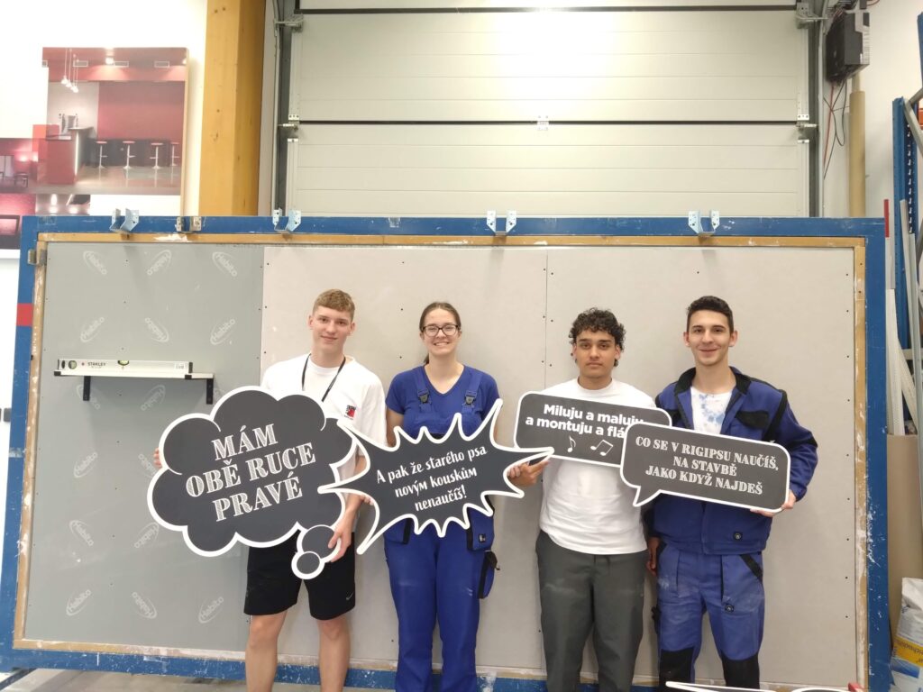 Dne 30. 4. 2024 se žáci druhého ročníku oboru stavebnictví zúčastnili zážitkové exkurze ve „Škole suché výstavby Rigips“, která sídlí přímo vedle závodu na výrobu sádrokartonových desek Rigips v Horních Počaplech u Mělníka.