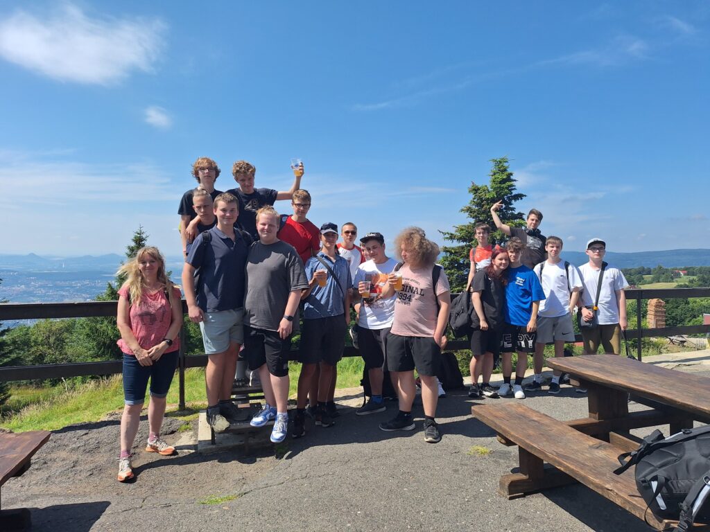 Další den ve středu 26.6.2024 naším cílem byla Komáří vížka, na kterou jsme se dostali vyhlídkovou sedačkovou lanovou dráhou. Po krátkém občerstvení na vyhlídce se všech 20 studentů vydalo pěšky zpět do Krupky. Stihli jsme zajít před odjezdem na zříceninu hradu Krupka.