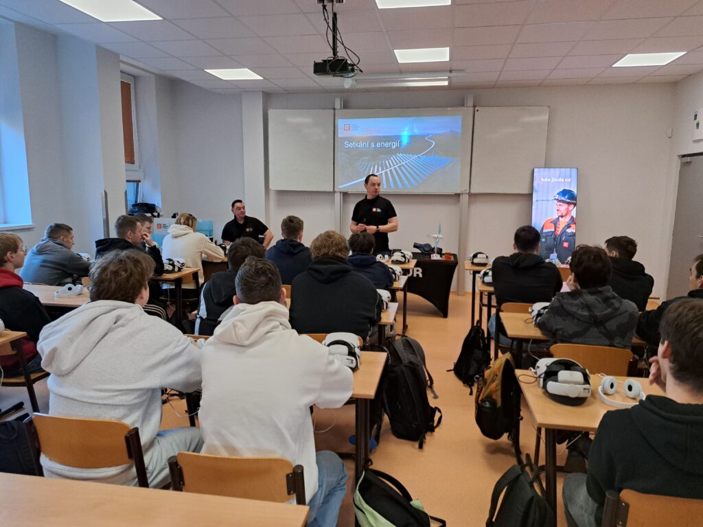 Zástupci společnosti ČEZ a.s. (jeden přijel dokonce až z JE Temelín) seznámili studenty různých tříd oborů Elektrotechnika a Strojírenství s problematikou výroby elektrické energie z různých zdrojů, s ohledem na efektivitu, spotřebu a životní prostředí.