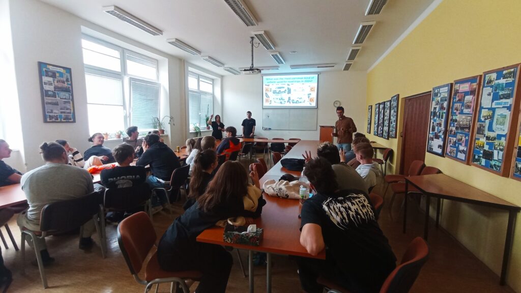 Jako již poněkolikáté na naše pozvání do naší školy zavítal Ben Robertson, Američan žijící v Ústí nad Labem, který přišel i tentokrát se setem zajímavých přednášek, které jsme si domluvili předem.  Pro třídy, které měli možnost se s ním setkat již dříve, to bylo téma Road trips in America a pro ty, jež ho ještě neviděli, vystoupil s původním tématem Life in America. Přivezl si s sebou i pár kolegů, takže se studentům mohlo  věnovat ve skupinových diskuzích více rodilých mluvčí. Pro děti je to vždy výtečná možnost slyšet native speakera, mluvit s ním a klást otázky.