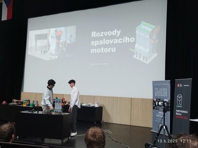 S velkou radostí oznamujeme, že naši studenti Daniel Racek a Matěj Záruba ze třídy S2 získali výborné 2. místo za svůj propracovaný model benzínového motoru s DOHC rozvody. Porotci, ostatní žáci a učitelé ocenili vysokou úroveň detailů a přesah do mnoha strojírenských předmětů.