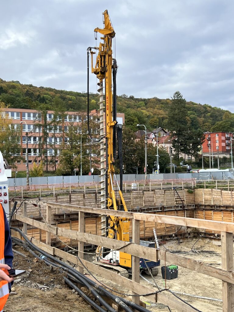 Mezi nejzajímavější části exkurze patřila demonstrace záporového pažení, které slouží k zajištění stavební jámy. Studenti dále sledovali proces vrtání pilot metodou CFA, které tvoří základovou konstrukci budovy. Na stavbě byly k vidění odvodňovací šachty sloužící k odvádění podzemní vody a stabilizaci základové půdy. V závěru exkurze si studenti prohlédli realizaci monolitických konstrukcí, které tvoří nosné části budovy.
